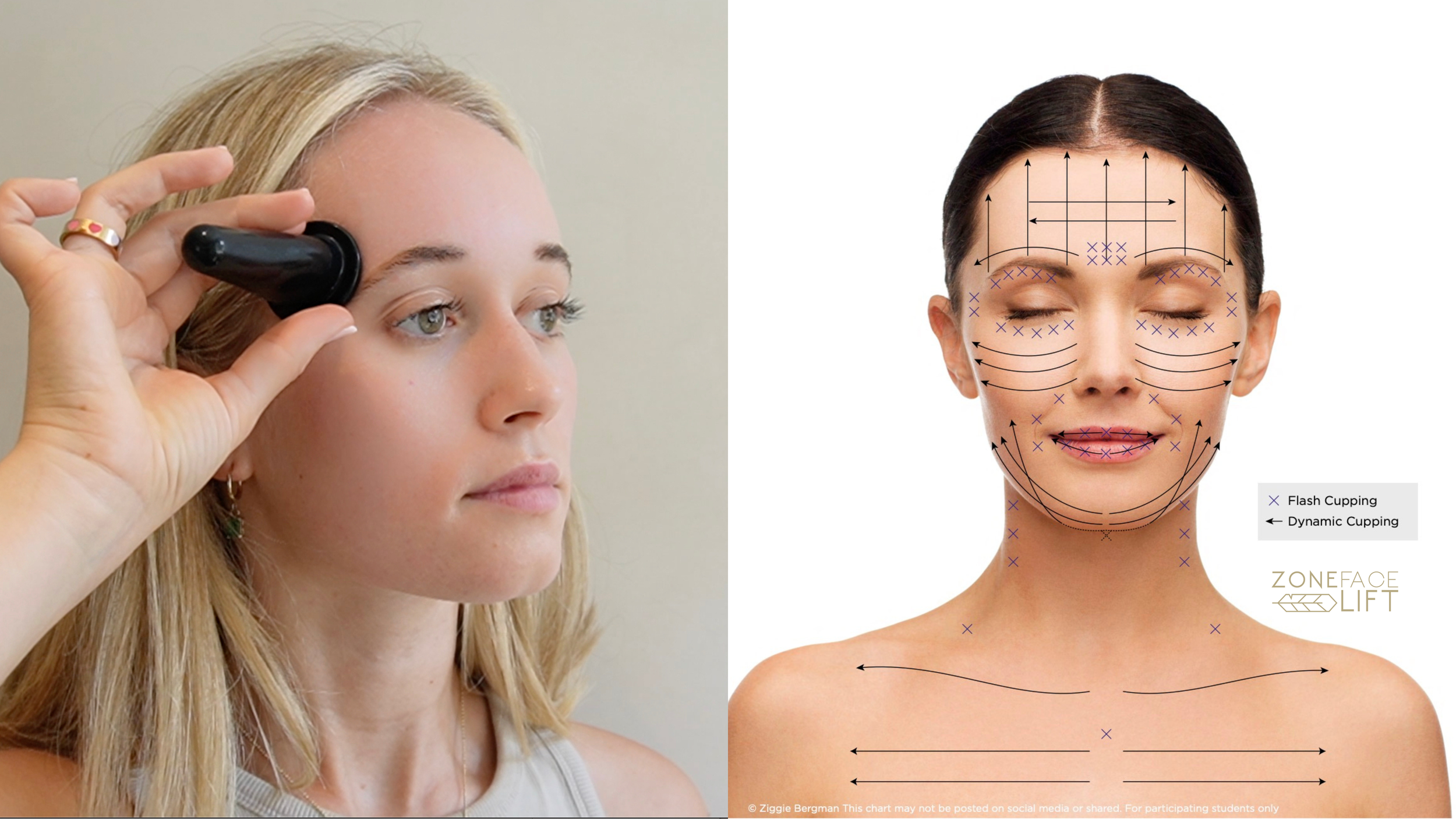 You will learn flash and dynamic cupping correctly, so you do not damage your skin and lift and sculpt your neck, eyes, jawline and forehead. The course includes a short 8 Point Facial Cupping Protocol, a Full Self-Care Facial Cupping tutorial with Ziggie guiding her client on the method, instructions and charts. The rituals areis simple to follow with safety tips to make sure your skin is suitable.